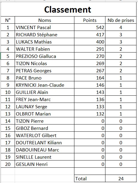 Malgré un temps maussade et frisquet, 10 Moucheurs de l’APNLE et de la Mouche de Gravelle se sont retrouvés, dans le Bois de Vincennes au lac Gravelle, pour en découdre durant 5 manches. Tout au long de la matinée, çà et là de belles prises, beaucoup de décrochages et pas mal de casses. Pour les résultats: Pascal de l’APNLE déjà vainqueur de la première édition, conserve son titre. Stéphane, nous ne savons pas dans quel camp il joue. Il a deux casquettes APNLE et Mouche de Gravelle, pour ne froisser personne et pour être sûr d’être du bon côté, monte sur la deuxième marche. Mathias, pour la Mouche de Gravelle, prend la troisième place. Comme lors de la première édition les prises n’ont pas été très nombreuses 24 poissons seulement. Félicitations aux trois premiers et bravo à tous les participants. Au vu du déroulement des deux éditions de ce concours interclubs APNLE-Mouche de Gravelle, nous pensons que cette confrontation amicale mérite d’être pérennisée afin de continuer à partager notre passion de la pêche à la mouche en Ile de France ! Rendez-vous est donc pris pour l’édition 2026 !